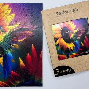 A Kolibri fa puzzle kiváló minőségű, újrahasznosítható fából készül. A darabokat precíz lézervágás formálja, ami biztosítja a pontos illeszkedést és a sima, kellemes kirakási élményt. Az UV-nyomtatásnak köszönhetően a színek élénkek, tartósak és mélységükben ragyogóak – így a kirakott kép igazi műalkotásként hat.