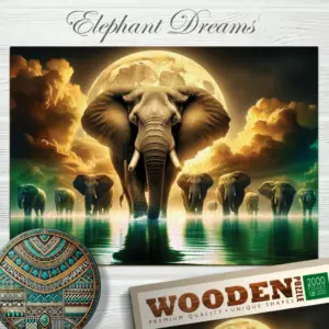Elephant Dreams puzzle din lemn fabricat din lemn natural de înaltă calitate care este durabil, plăcut la atingere și o alternativă ecologică la puzzle-urile tradiționale din carton. Datorită tăierii precise cu laser, îmbinările sunt precise și piesele se potrivesc bine între ele, păstrând în același timp distracția și provocarea puzzle-ului.