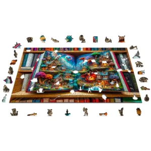 Az Elvarázsolt mesék fapuzzle egy utazást ígér a képzelet birodalmába. Ahogy összerakod, nézd, ahogy egy csodás mese kibontakozik – egy varázslatos könyv, amelynek szereplői életre kelnek! Fedezd fel a rejtett birodalmakat, ahol sárkányok szárnyalnak az égen, finom tündérek repkednek, és különféle varázslatos lények laknak.