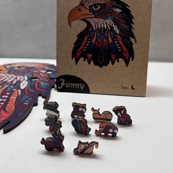 A Puzzle din lemn cu vultur maiestuos nemcsak kikapcsolódást nyújt, hanem valódi kihívás is. A színes mintázat és az egyedi darabformák miatt a kirakás koncentrációt, türelmet és logikát igényel. Ez a fajta szellemi kihívás nemcsak szórakoztató, hanem fejlesztő hatású is: javítja a megfigyelőképességet, erősíti a memóriát és segít a stressz oldásában.