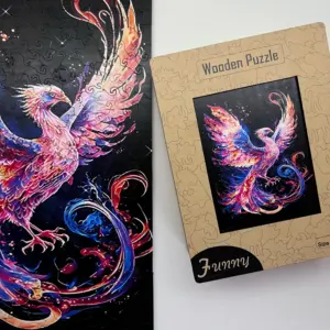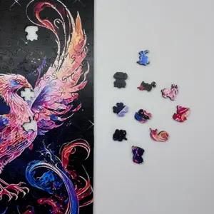 A Phoenix puzzle din lemn a megújulás és a feltámadás szimbólumát kelti életre lenyűgöző, színpompás formában. Ez a kirakó nem csupán egy kreatív kihívás, hanem egy szimbolikus utazás is: a lángokból újjászülető madár ereje, szépsége és energiája minden darabban ott rejlik. A puzzle különleges, tűzben ragyogó színeivel és részletgazdag kidolgozásával a természet és a mitológia tökéletes harmóniáját testesíti meg.