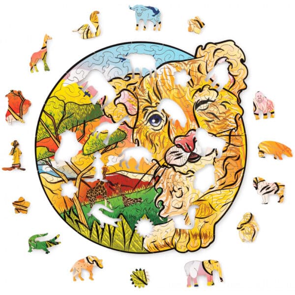 A gyerekek imádni fogják ezt a gyönyörű puzzle-t a Wood Trick-től. A darabok környezetbarát fából készültek, és egy játékos oroszlánt formáznak a szafarin. A puzzle ráadásul gyönyörű, élénk színekkel rendelkezik.