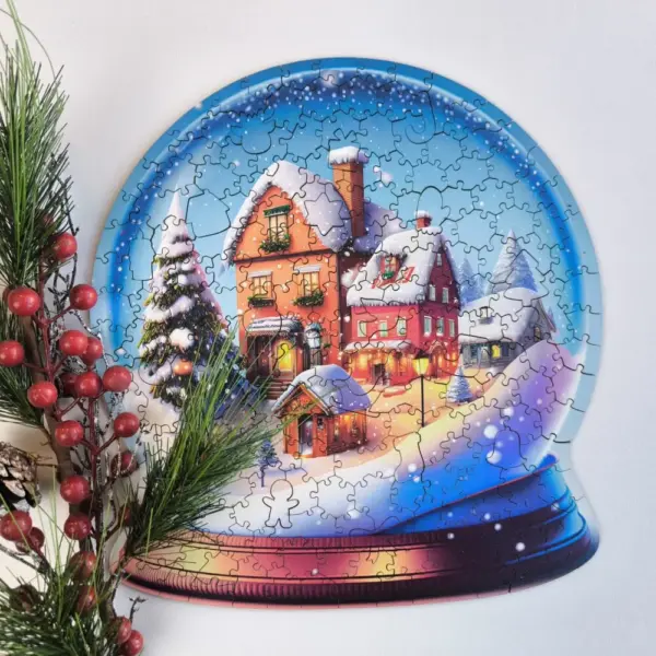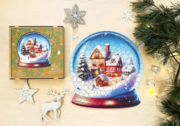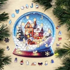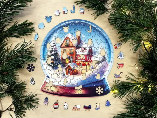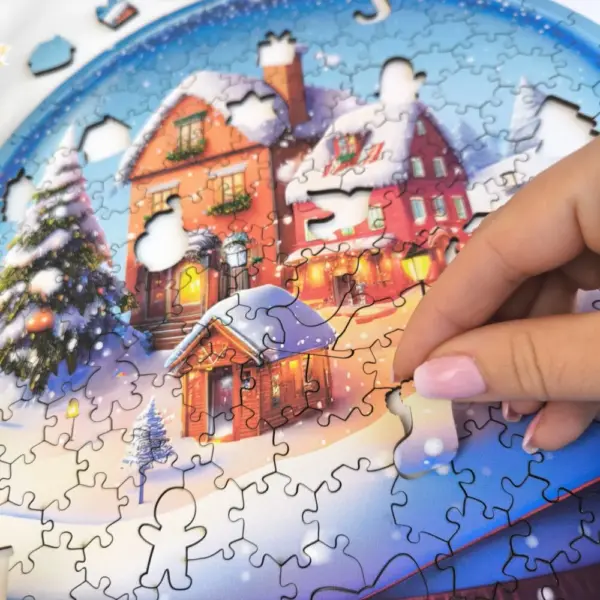 A puzzle megalkotása közben úgy érezheted, mintha egy aprólékos miniatűr világot építenél. A hógömb áttetsző kékes fénye, a háttérben magasodó fenyők és az ünnepi fények sokasága minden kirakott darabbal egyre hangulatosabbá válik. Minden részlet gondosan kidolgozott: a kis házak cserepei, az ablakkeretek fényjátéka, a hópelyhek finom mintái mind-mind hozzájárulnak ahhoz, hogy a végeredmény lélegzetelállító legyen.