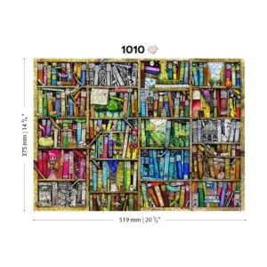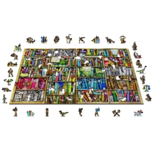 Fedezd fel a fából készült puzzle varázslatos varázsát, ahol a mesekönyvek meséi elevenednek meg. Aprólékosan megmunkált darabokból összeállítva egy nagy, szeszélyes könyvespolcot ábrázol, amely hemzseg a kalandoktól. Egy lány felmászik egy létrán, hogy kiválassza a következő meséjét, miközben mitikus lovak és karakterek téblábolnak egy sor virágzó virág mellett, és alig várják, hogy megosszák történeteiket.