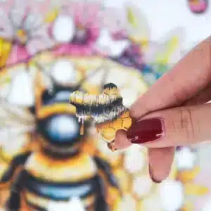 Ez a szorgos kis méhecske mindig izgatottan zümmög! Merülj el ennek a méh-témájú kirakósnak az összeállításában, ahol az egyedi formájú darabok, mint a méhek, virágok és méhsejtminták gyönyörűen összeállnak. Ez a fából készült kirakós megragadja a méhek nyüzsgő világának lényegét, és biztosan gyűjteményed becses darabja lesz.