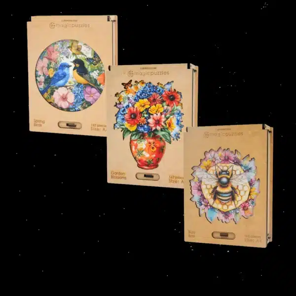 Lasă atmosfera liniștită și trezitoare a primăverii și a grădinii să intre în casa ta! Puzzle AZ Pachet de grădină o colecție exclusivă de trei produse atent selecționate puzzle premium din lemn conține o capodoperă. Fie că sunteți în căutarea unui produs de lungă durată, joc de reducere a stresului, chiar și un extraordinar și cadou ecologic pentru cei dragi, pachetul Garden este alegerea perfectă.