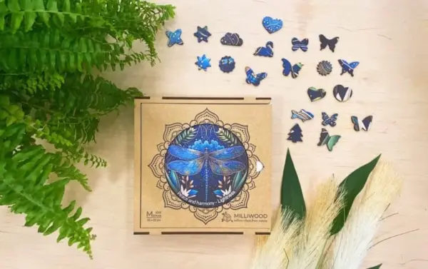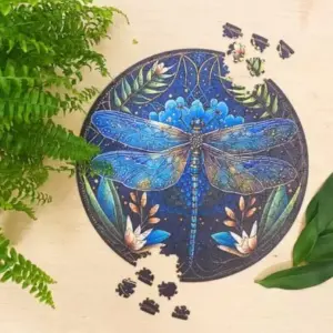 Introduceți belső harmónia és szépség világába, ahol minden részletnek jelentése van. Ez a különleges, Könnyedség – szitakötő fa puzzle egy színes, virágos mandalát ábrázol, melynek középpontjában egy finom, légies szitakötő ragyog. 🌿🦋
