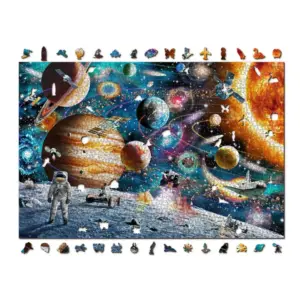 De la Puzzle din lemn Space Odyssey egy különleges, vizuálisan lenyűgöző kirakós, amely a kozmosz határtalan világába kalauzol. A képen bolygók, csillagok, galaxisok és egy magányos űrhajós jelennek meg egy álomszerű, szinte filmszerű kompozícióban. Ez a puzzle nem csupán szórakozás, hanem egy mély, elgondolkodtató élmény is – az emberiség örök kíváncsiságáról, felfedezési vágyáról és az ismeretlen iránti vonzalmáról szól.