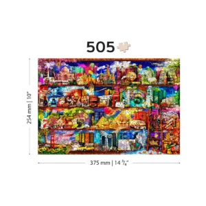 Indulj el egy kellemes utazásra a World Travel Bookshelf 500 fapuzzle segítségével. Fedezd fel a Földet otthonod kényelméből, és merülj el a globális nevezetességek és élővilág varázslatos világában.