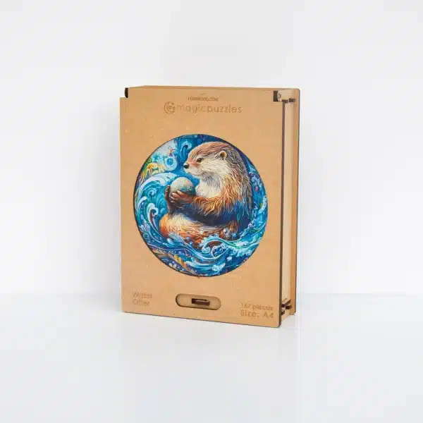 Fedezd fel a bájos Vízi vidra fa puzzle-t Egy boldog vidra lebeg az örvénylő kék hullámok között, miközben gyengéden tart egy kis követ. A kirakó kerek formája még szórakoztatóbbá teszi az összerakást. Minden egyedi fa darab tökéletesen illeszkedik, hogy létrehozza ezt a gyönyörű jelenetet. Érezd a nyugalmat és a pihenést, miközben életre kelted ezt az aranyos vidrát.